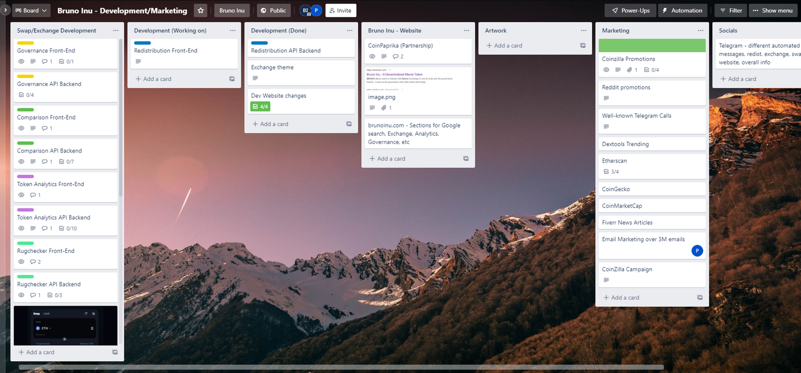 In Trello boards, you can find everything about development and marketing. Find more about Bruno's